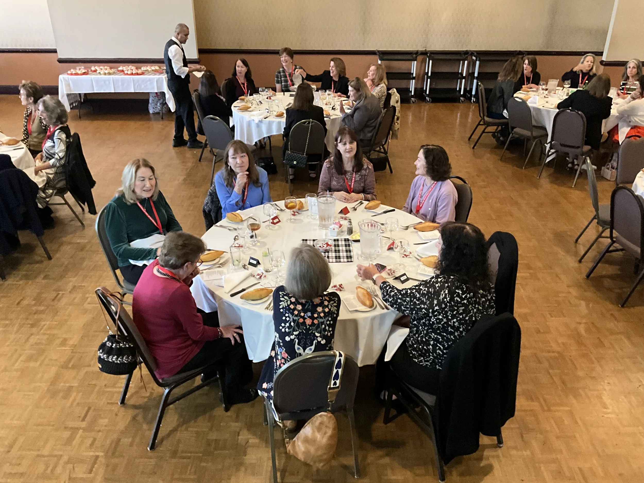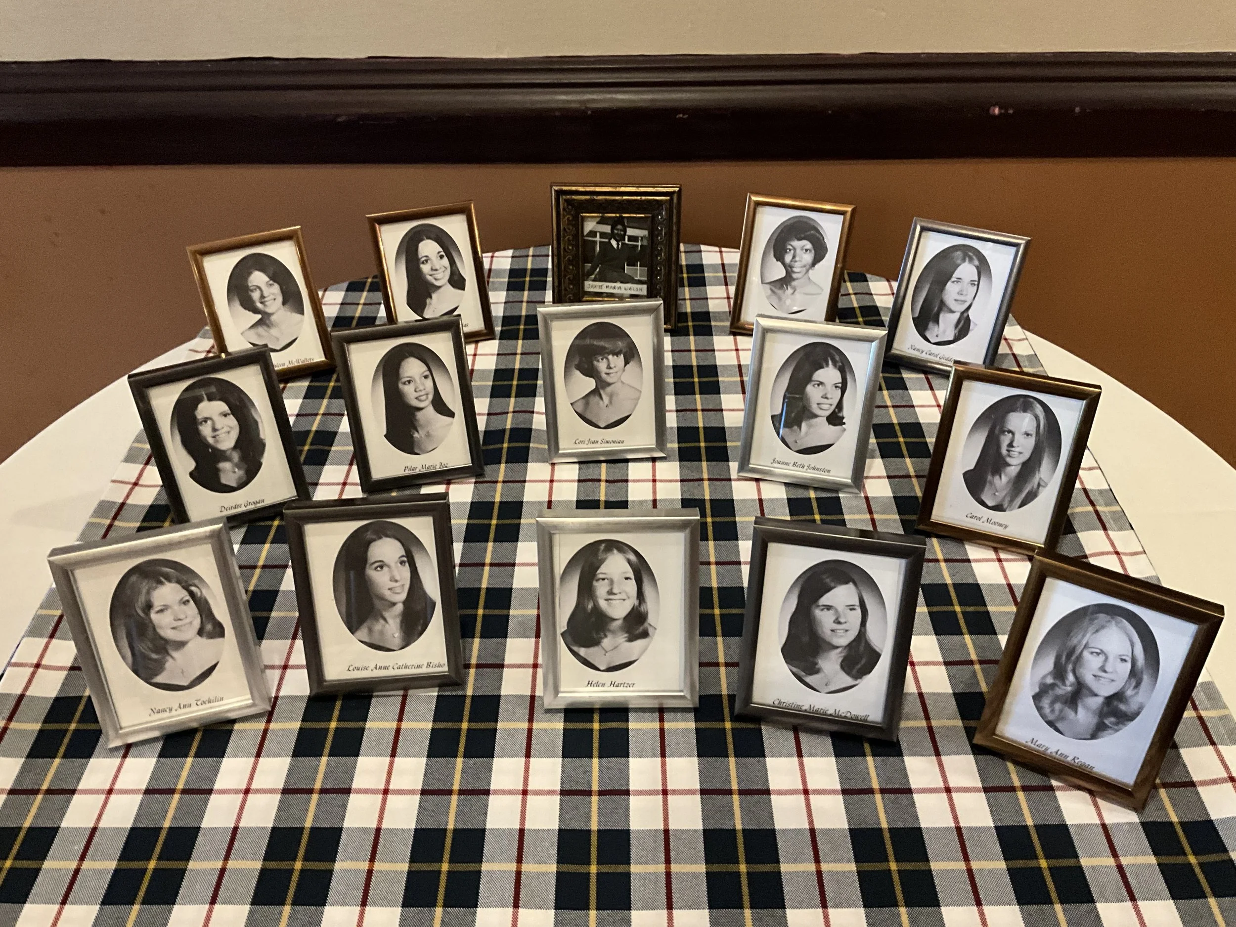 On October 12, 2024, 60+ 1974 classmates and three faculty members gathered at the Basque Cultural Center to celebrate our 50th high school reunion. The room was bedecked in red and white, we sang the school song and took selfies together. Old friends shared memories and laughter and made plans to stay in touch. We honored our lost classmates. Attendees left with a custom-designed lapel pin and printed commemorative wine glass. Sr. Mary Waskowiak (aka Sr. Deborah Mary) spoke about her ministry with the Sisters of Mercy, assisting vulnerable migrants at the border (https://casademisericordia.org/). Our raffle fundraiser provided a nice donation to support Sister's work.